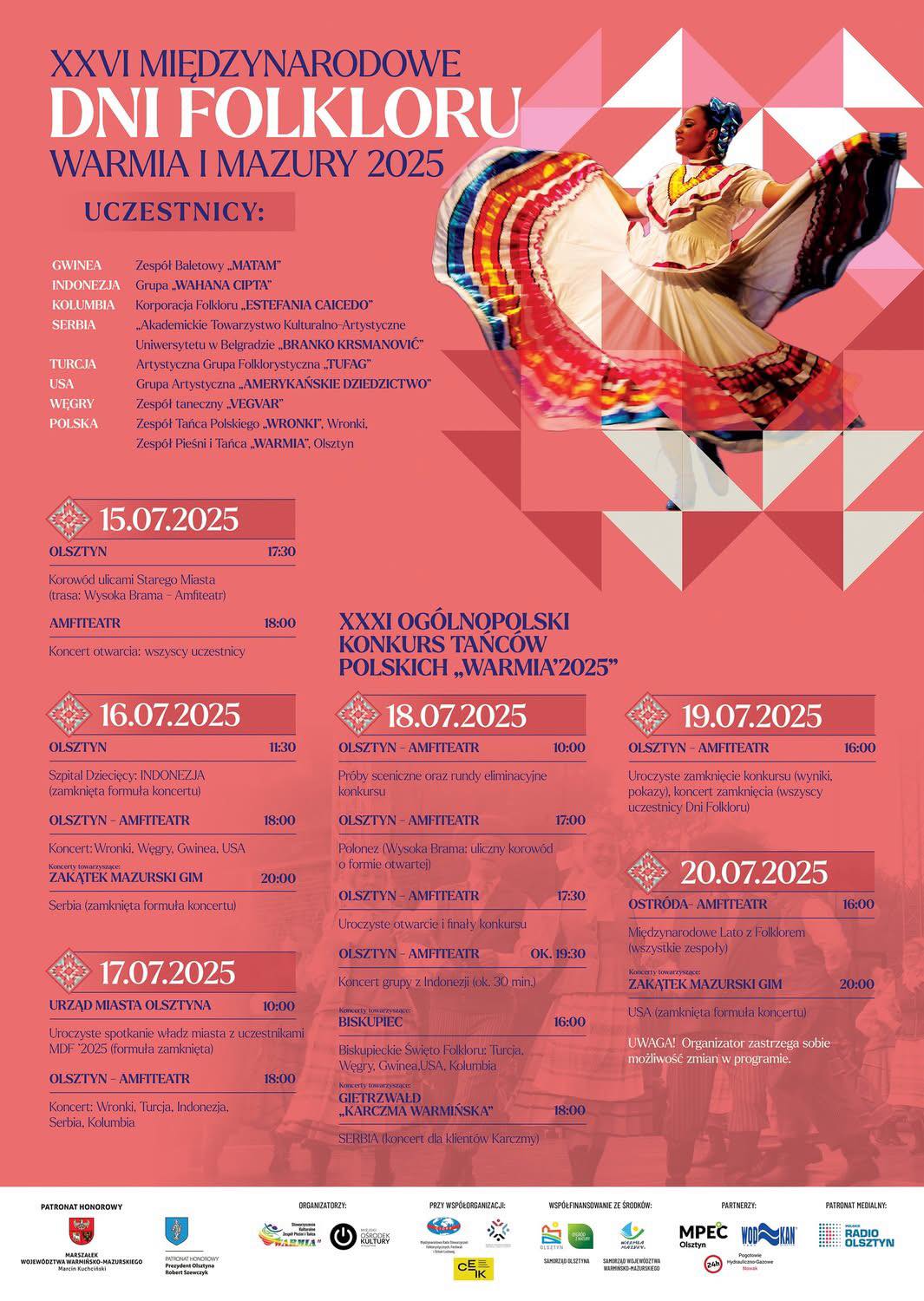 Informujemy, że trwa rejestracja na XXXI Ogólnopolski Konkurs Tańców Polskich „WARMIA 2025” ! Rejestracja trwa do 3 lipca na platformie: turnieje-tp.cioff.pl